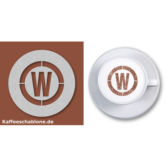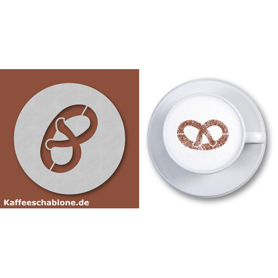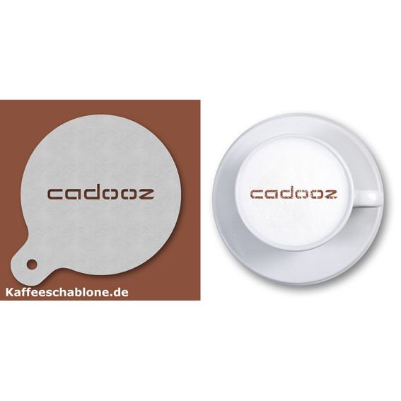 Die abgebildete Cappuccino-Schablone stellt ein Firmenlogo der Firma Haarwerk dar und wurde als Giveaway gefertigt.