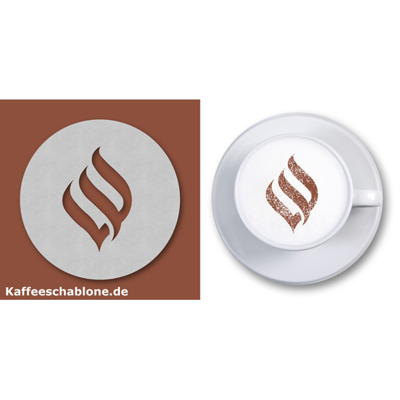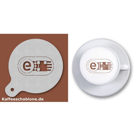 Die abgebildete Kaffeeschablone beinhaltet den Schriftzug "B+L" und wurde als ein Werbeartikel hergestellt.